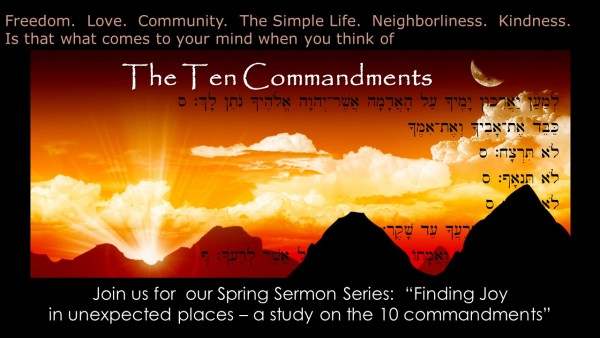 Freedom. Love. Community. The Simple Life. Neighborliness. Kindness.Is that what comes to your mind when you think of when you hear the phrase "The Ten Commandments" ? Most of us have a pretty uninformed understanding of the Ten Commandments. Rather than being a set of rigid, old religious rules, it turns out that the Ten Commandments are actually habits of behavior and habits of thought that lead us to human flourishing... that lead us to the Good Life. Join us for this practical, challenging series!